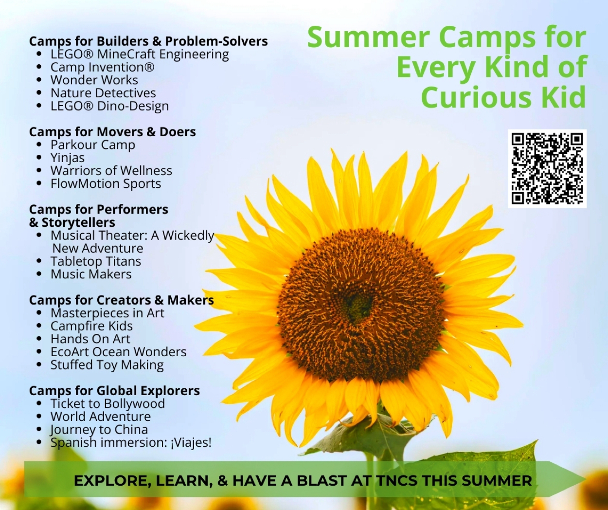 See the full calendar and camp descriptions on the TNCS website.