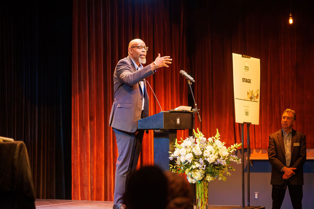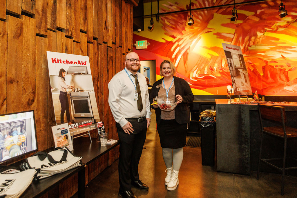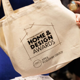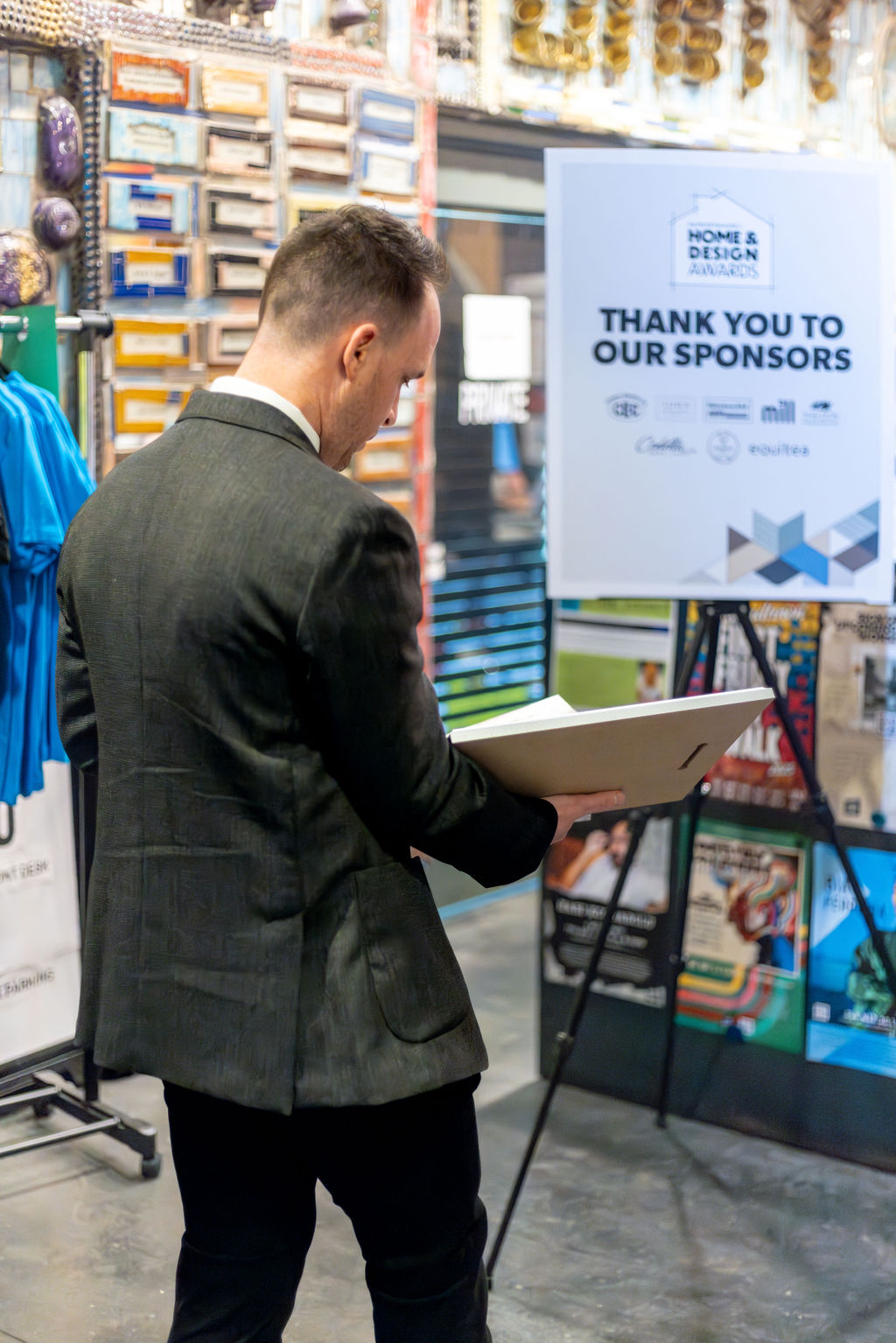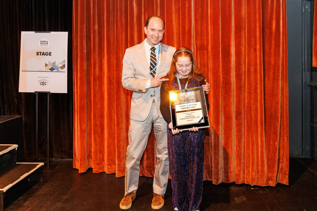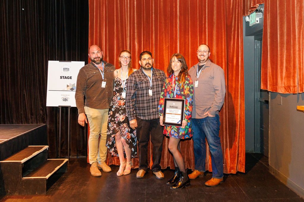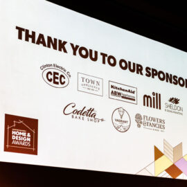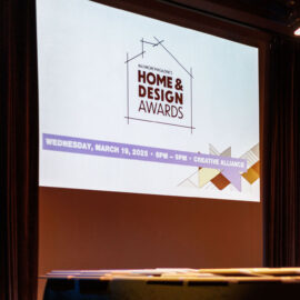 Guests began the evening by checking in at registration sponsored by Mill, networking with industry colleagues, enjoying delicious bites by Absolutely Perfect Catering, and snapping pics in the photo booth sponsored by Sheldon and Sons. Happy Hour was presented by ABW. Over 130 attendees entered the theatre for the Awards Presentation which honored 31 categories of work for local architects, builders, and designers. The stage was sponsored by Clinton Electric. Afterwards, guests enjoyed dessert by Codetta Bake Shop and coffee by Vagrant Coffee, and were encouraged to take home a custom pint glass from Town Appliance, and tote bag from APEX Builders Group.