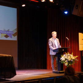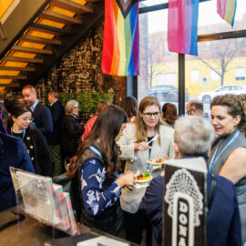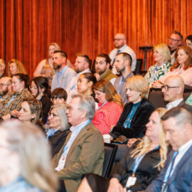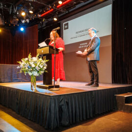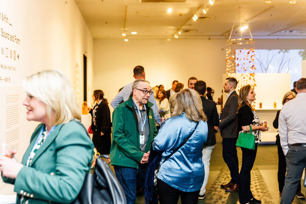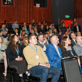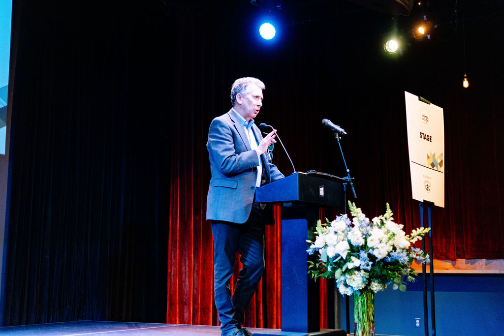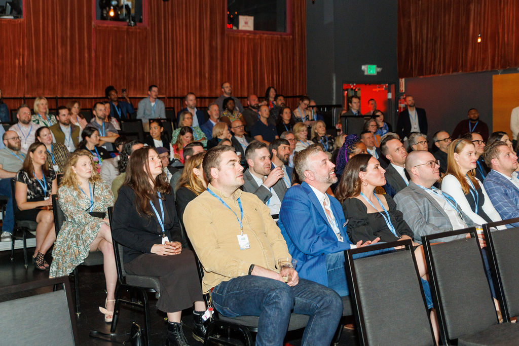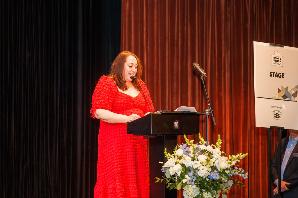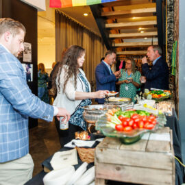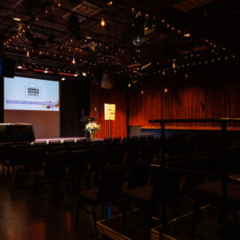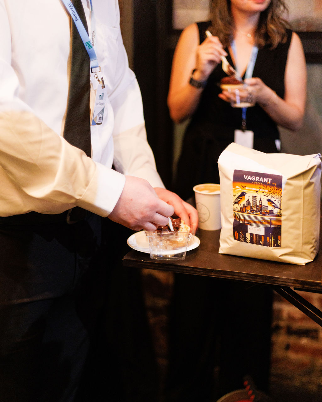 Guests began the evening by checking in at registration sponsored by Mill, networking with industry colleagues, enjoying delicious bites by Absolutely Perfect Catering, and snapping pics in the photo booth sponsored by Sheldon and Sons. Happy Hour was presented by ABW. Over 130 attendees entered the theatre for the Awards Presentation which honored 31 categories of work for local architects, builders, and designers. The stage was sponsored by Clinton Electric. Afterwards, guests enjoyed dessert by Codetta Bake Shop and coffee by Vagrant Coffee, and were encouraged to take home a custom pint glass from Town Appliance, and tote bag from APEX Builders Group.