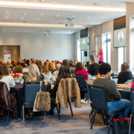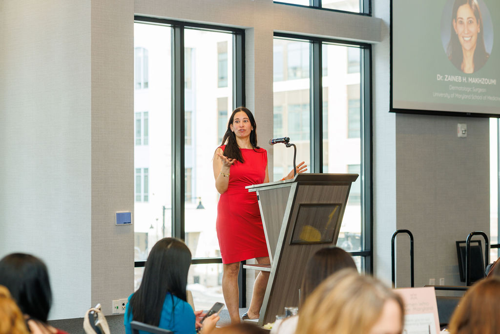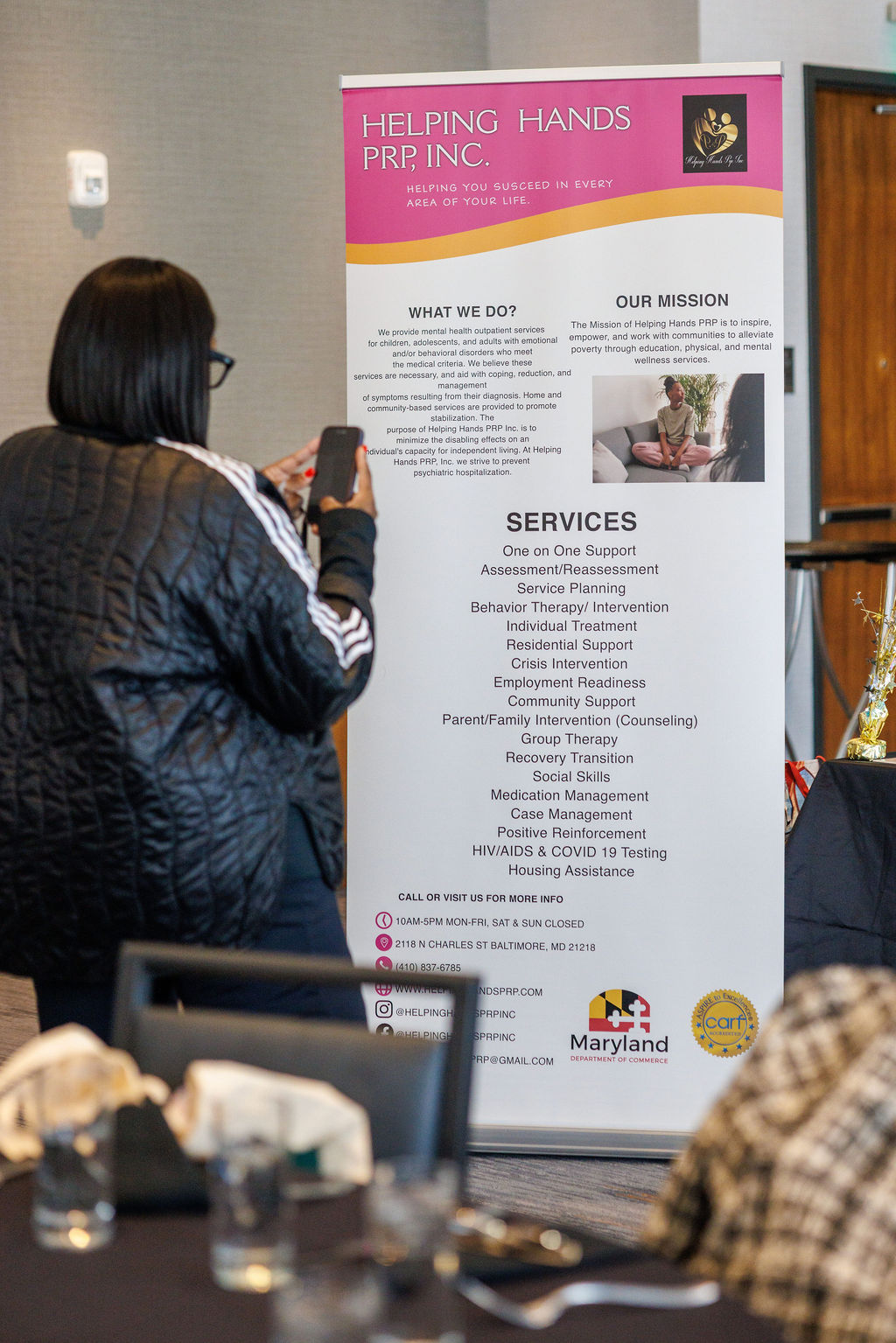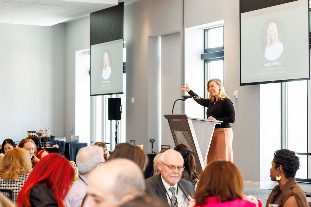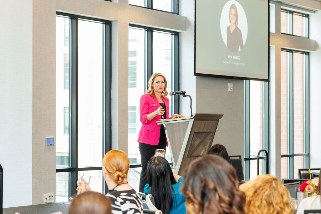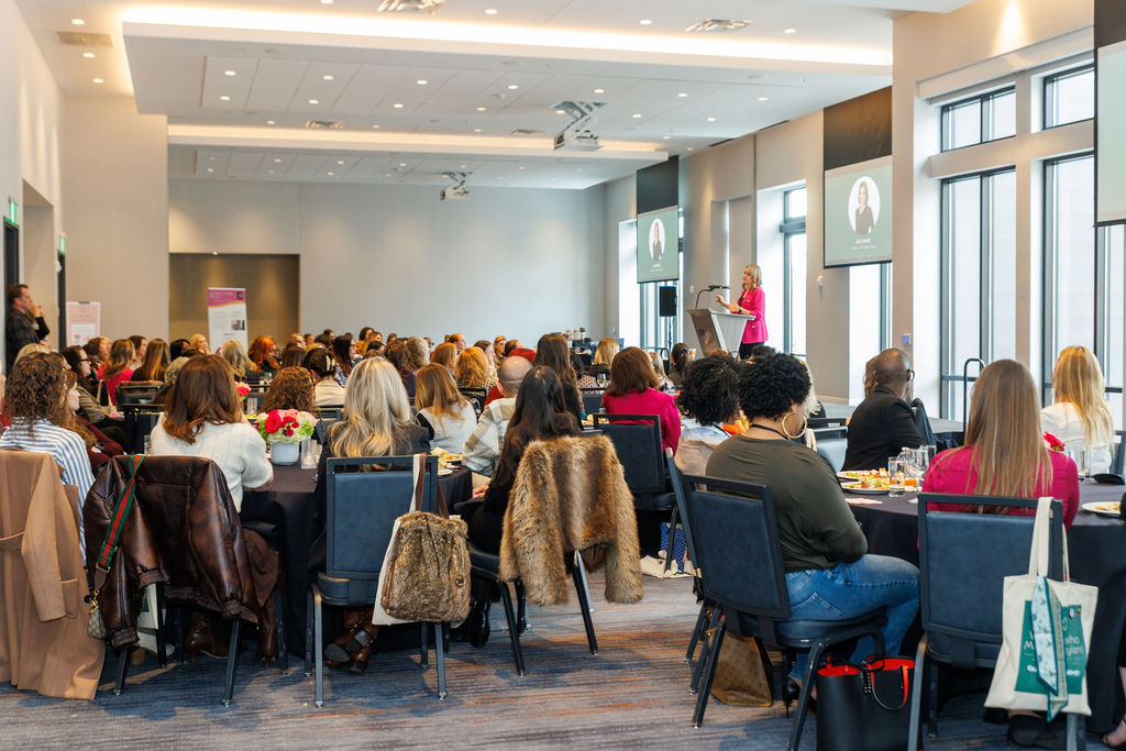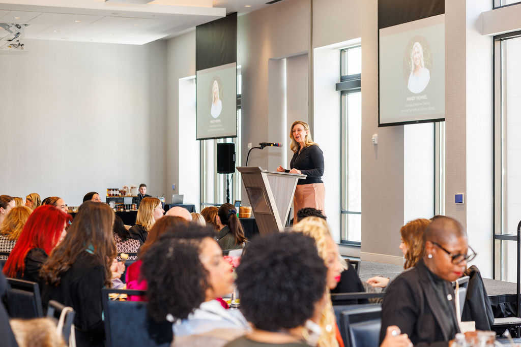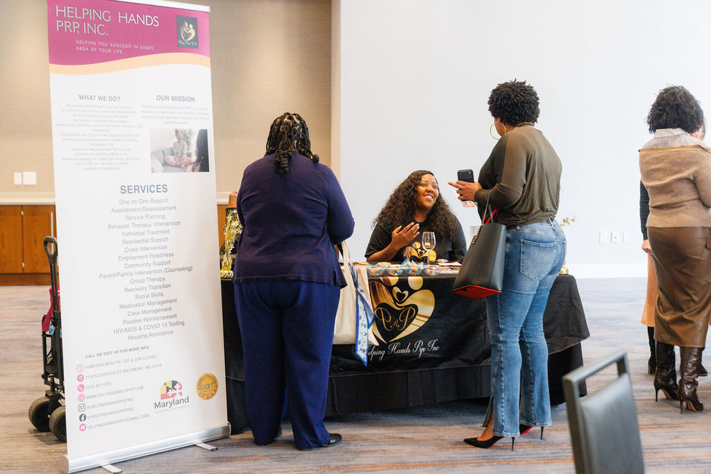 Guests arrived ready to connect, capturing memories at the photo booth and mingling before coming together in the Marriott Owings Mills Metro Center‘s stunning Hawthorne Ballroom for a beautifully curated luncheon. The energy in the room was electric as attendees were treated to an inspiring lineup of speakers — Renee Uhlman, Director of Sales and Marketing at Marriott Owings Mills Metro Center; Dr. Zaineb Makhzoumi, Dermatologic Surgeon with University of Maryland Faculty Physicians; Mandy Memmel, Founder and Executive Director of The Well; and Ava Marie, Meteorologist for WBAL — each bringing their unique perspective and passion to the stage. Guests left with custom decorated totes courtesy of Glenwood’s, meaningful new connections, and a renewed sense of inspiration that extended well beyond the afternoon.