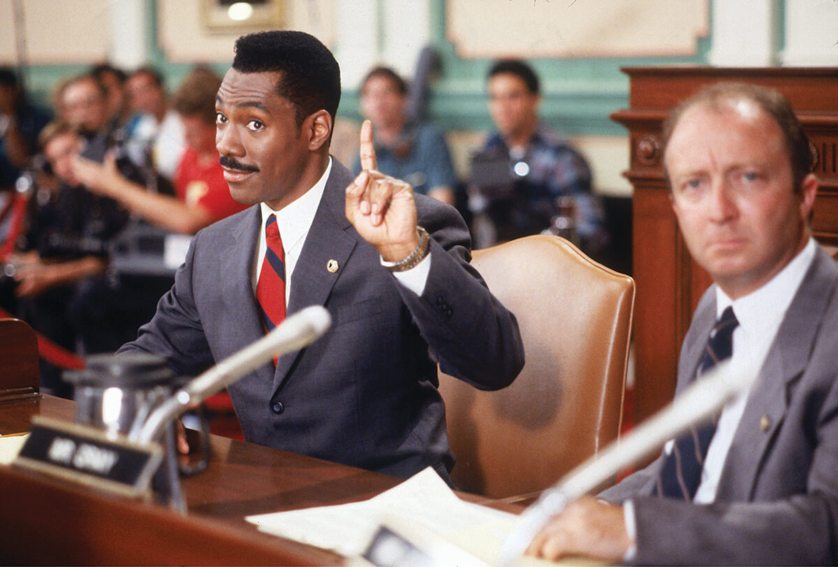 Starring Eddie Murphy, Lane Smith, Sheryl Lee Ralph, Joe Don Baker, Victoria Rowell, Charles Dutton. Plot: A con man believes becoming a U.S. congressman is a ticket to fast money, but then he develops a conscience.