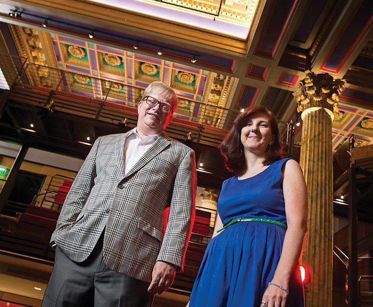 For 12 years, CSC has performed outdoors in Ellicott City (which it will continue to do in the summer), but once Gallanar got a glimpse of the old Mercantile Trust and Deposit Company building, he knew this was the company’s new home. “The building is evocative and reminds one of the configuration of the Globe Theatre,” he says. “It’s an intimate, vertical theater where the furthest audience member is only 20 feet from the stage.”