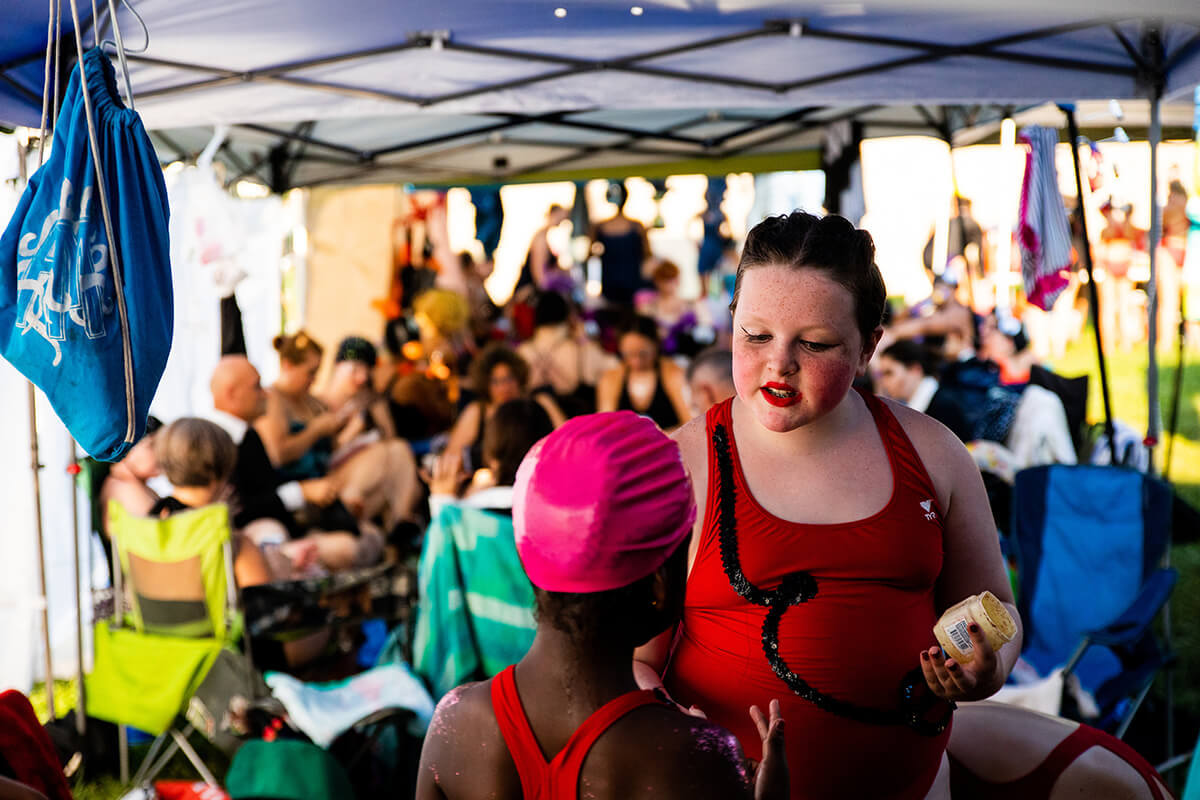 “Seeing these people bare their bodies is a whole other piece of why this is so important for people and why it’s important to me,” says Perez-Schere. “Seeing trans people in bathing suits and having people in drag in bathing suits, not just in a performance, but in public in a city pool, was some transgressive shit 15 years ago. . . . Those are the ephemeral little pieces of bringing a community together that are vital.”