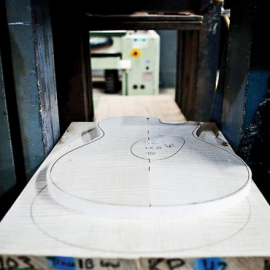 Poster-size sheets of white paper with specs lay before him on the conference table. They’re reminders that Smith’s job isn’t just some rock ‘n’ roll fantasy. He has a lot on his mind, these days. In fact, a tangible sense of excitement and urgency can be detected throughout the factory—from the top down, from this conference room to the shop floor. PRS is about to unveil its 25th Anniversary guitars at the National Association of Music Merchants (NAMM), one of the largest industry events in the world; the launch of new lines of acoustic guitars and guitar amplifiers is already underway, and today is the employee awards ceremony.