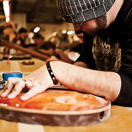 “Paul’s dynamic personality was as evident [then] as it is now,” says Jack Higginbotham, President of PRS Guitars. Higginbotham was one of the first builders Smith hired for the shop 25 years ago. At the time, Higginbotham had no experience making guitars—he was a local musician. “I remember going home and telling my girlfriend that I just met a really interesting guy who I think is going to do something in this world,” says Higginbotham. “The way I think of it is: Paul had a dream and brought us into his dream.”