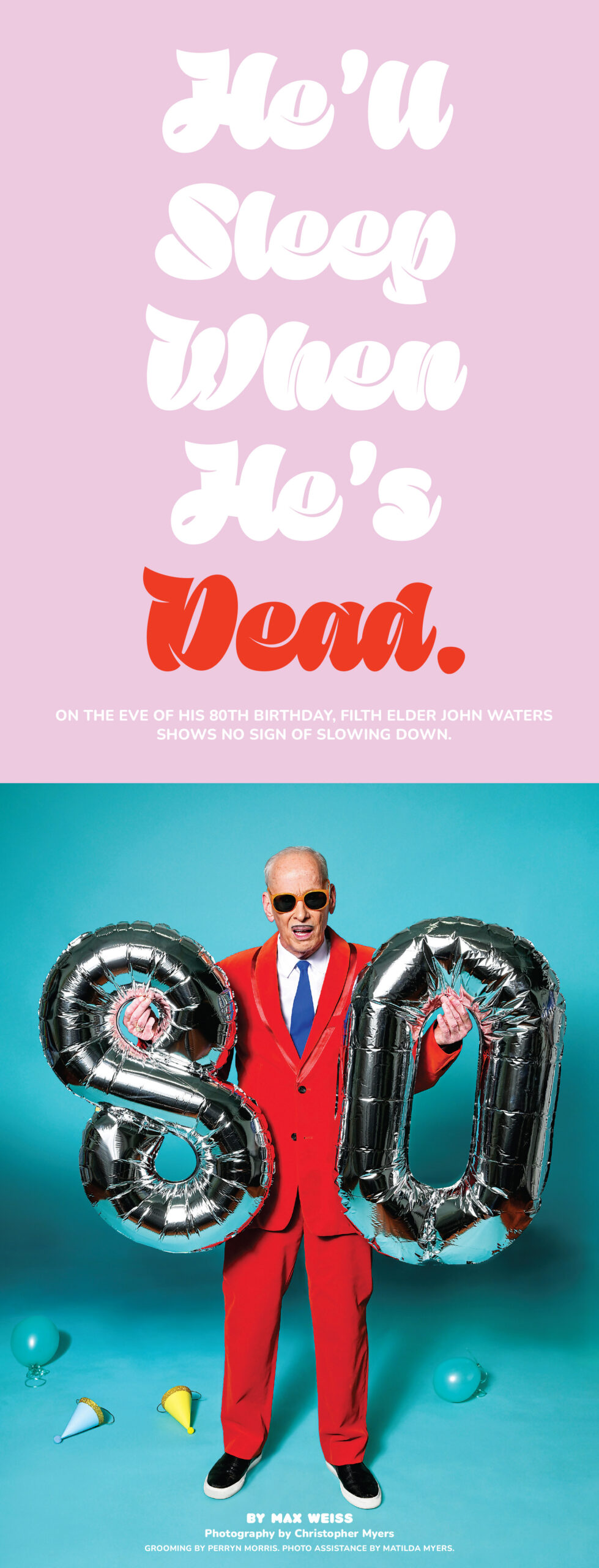 He is truly one of the wittiest people you’ll ever meet. He’s well-versed in virtually every subject—from art to film to politics—and his takes are always incisive, irreverent, and laugh-out-loud funny. He has a way of talking, of italicizing certain words, that is unmistakable. (You don’t just read a John Waters quote, you hear it.)