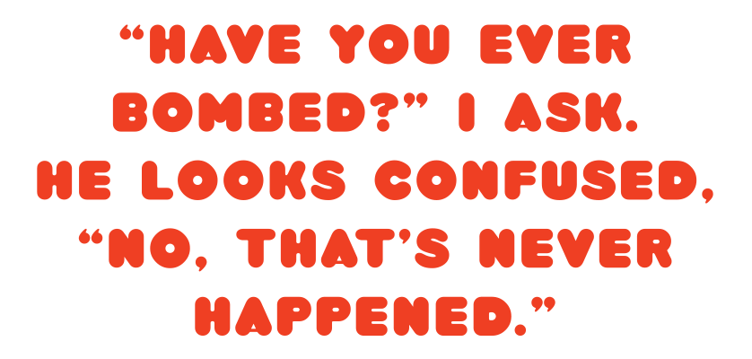 “Have you ever bombed?” I ask.