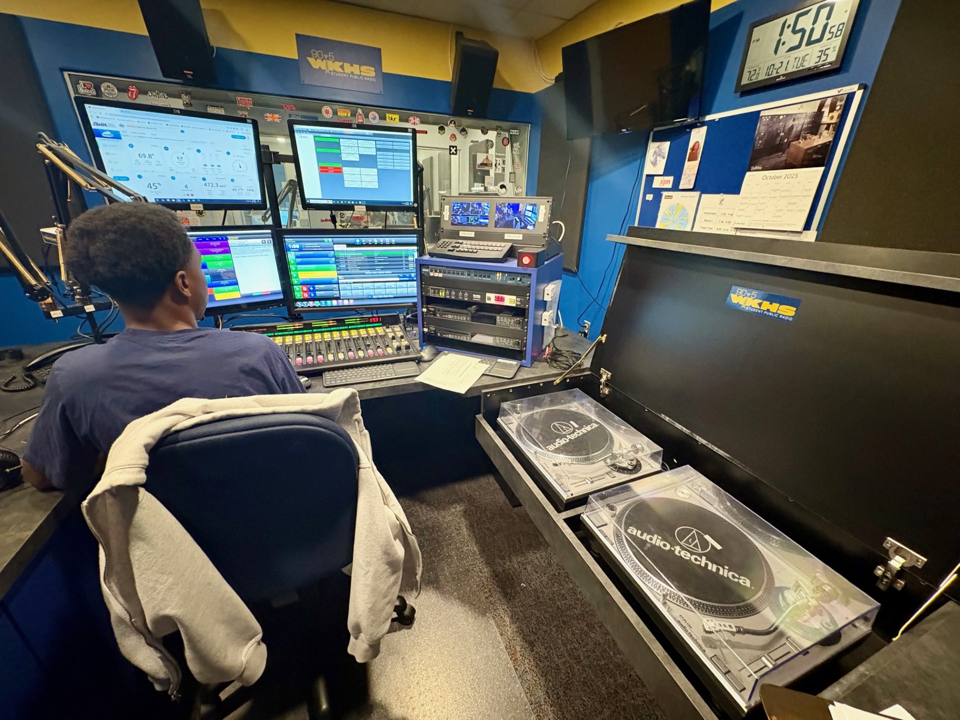 In the middle of a successful career, mostly in Washington, D.C. commercial radio, he took on the duties of station engineer three decades ago, a part-time role. He became WKHS’s full-time station manager and student instructor in 2008.