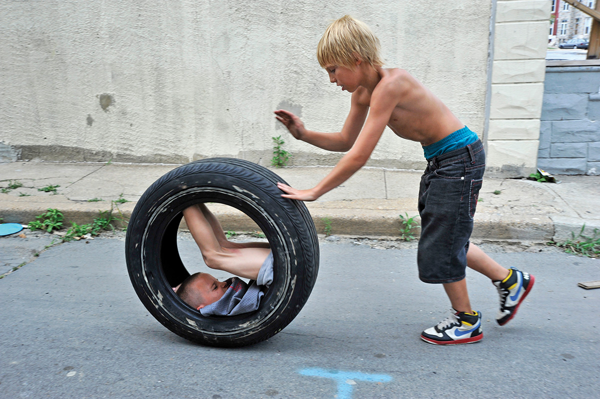 Her cousin Sally, however, suggested the neighborhood where their great-grandmother and great-grandfather, rabbi Benjamin Szold, settled after emigrating from Austria-Hungary in the 1850s. In her ancestors’ once-upon-a-time stomping grounds in Southwest Baltimore—aka Sowebo—she found inspiration in children jumping up and down on a discarded mattress and kids kicking around a tin can on the streets of the struggling community.
