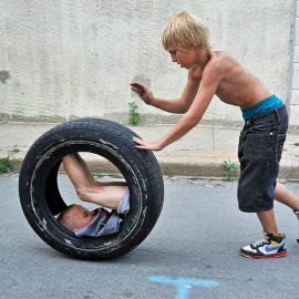 She has been obsessively shooting Sowebo since the mid-2000s. At the time, she’d inherited a little money and wanted to use the funds for a street photography project she wouldn’t otherwise get to do. She considered various spots around the world but was intrigued by returning to Baltimore, to a neighborhood not far from where the Szold family lived. During an early visit to Sowebo, Cooper spotted a child jumping on a mattress, which reminded her of the Street Play project. “It just looked right,” she recalls. “I thought, ‘That’s the kind of neighborhood I want.’”