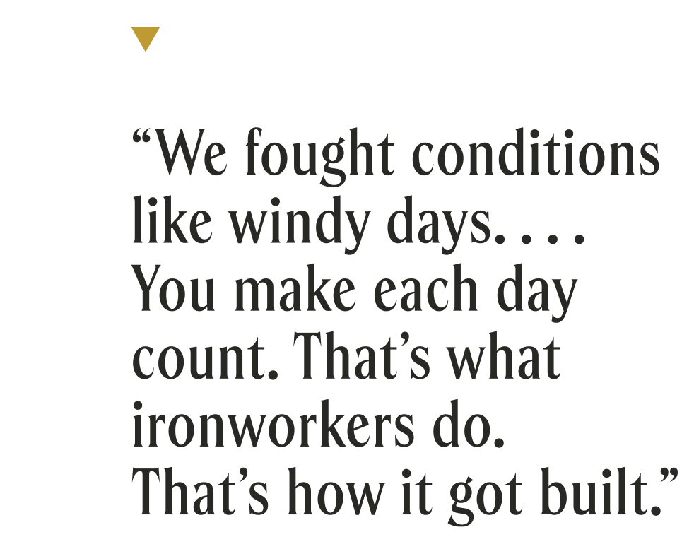 Every time we that we’d drive over the bridge, I tell my grandkids that I helped build it. I don’t know if the average person understands how dangerous that work can be or not, to tell you the truth. I had a friend who was a cop and lived in our neighborhood. He said he wouldn’t do that kind of work. But I wouldn’t be a policeman, you know? I guess he understood what it was all about.