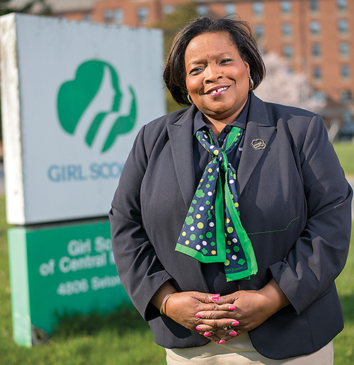 Girl Scout pin. It reminds me of my purpose to do what I can every day to empower young girls with courage, confidence, and character.