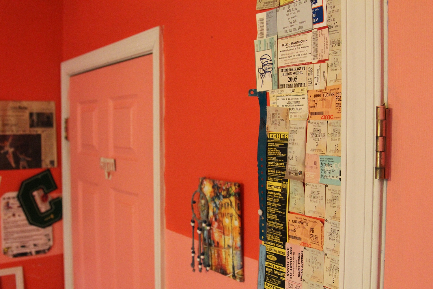 My room had the same red and pink walls that I’d left behind, covered in collages made from J-14, Seventeen, and Teen Vogue magazines. The wall near my closet was still plastered with ticket stubs from every movie, play, and concert I’d likely ever been to—including Avril Lavigne at the old Bohager’s in Fells Point when I was 9, middle school screenings of The Sisterhood of the Traveling Pants and John Tucker Must Die, and my 2006 command performance as Mrs. Van Daan from an eighth-grade production of The Diary of Anne Frank.