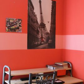 The wobbly desk is now sturdy. Maybe I’ll take it with me to my next place.