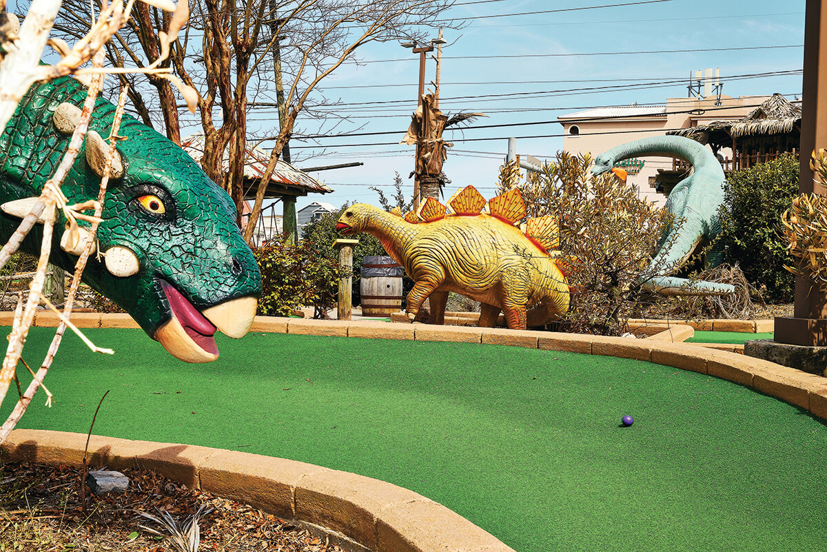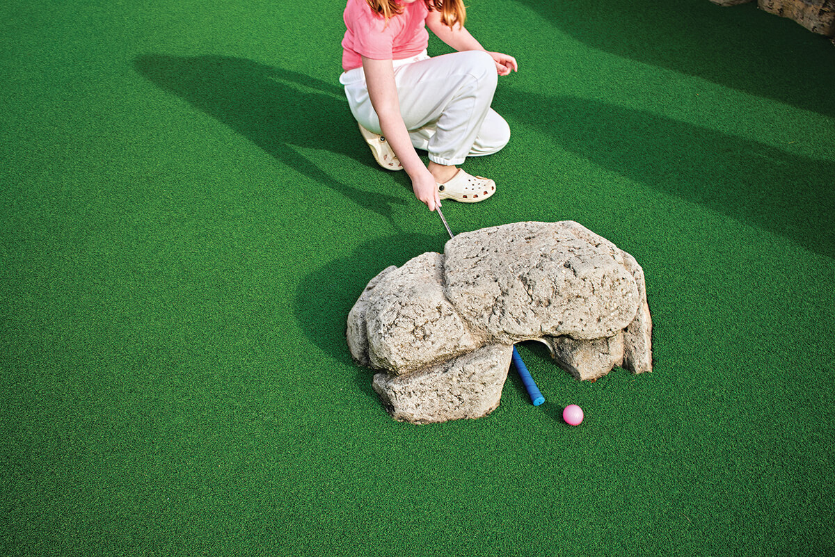 As children, we didn’t know that mini golf was tacky—we were swept away by the dinosaurs, giant bears, faux stone castles, and paper-mâché volcanoes. It all felt like a thrilling fantasy. As adults, we see mini golf as a nostalgic reminder of the “good old days,” or perhaps we enjoy it through the excited eyes of our own children and grandchildren.