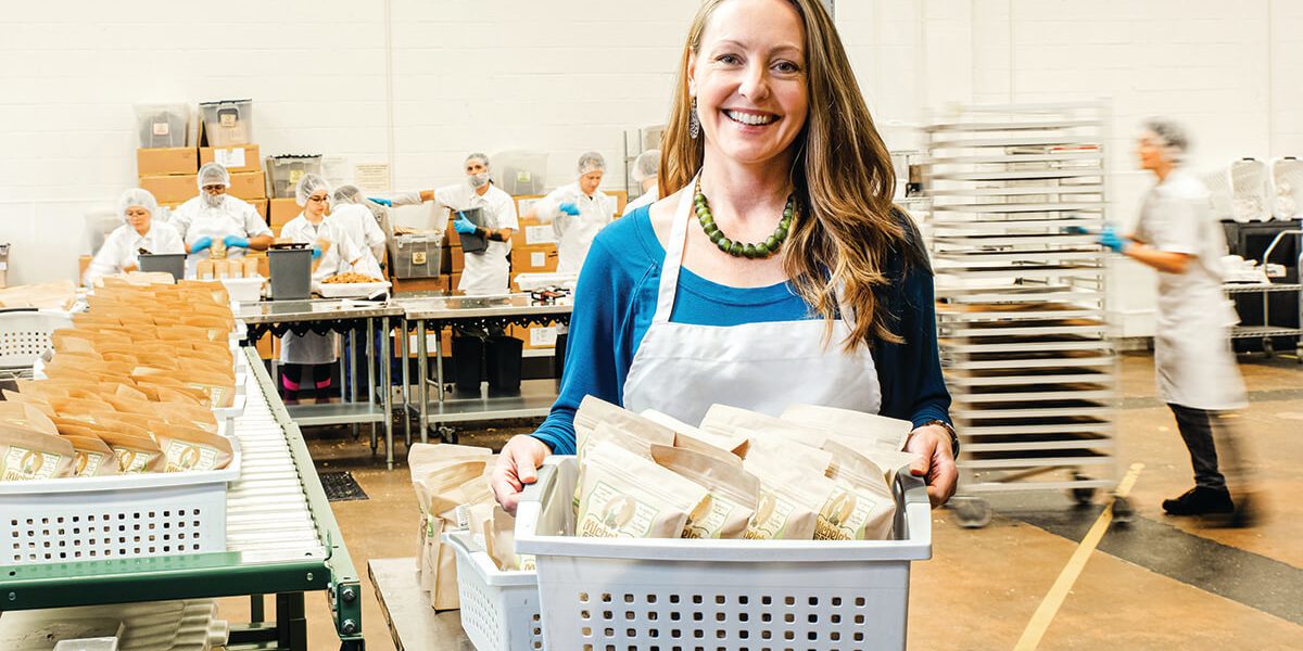 It’s been 13 years since Tsucalas started selling her eponymous all-natural granola at area farmers’ markets, and she now employs a staff of 40 in her bustling Timonium production facility. Though the volume has grown—more than 20,000 pounds of granola, from cherry chocolate to almond butter, are made weekly—it’s all still done by hand—and from the heart. Even the design of the iconic brown paper bag—with its Art Nouveau lettering and a beautiful woman emblazoned on the seal—was inspired by Tsucalas’ travels.