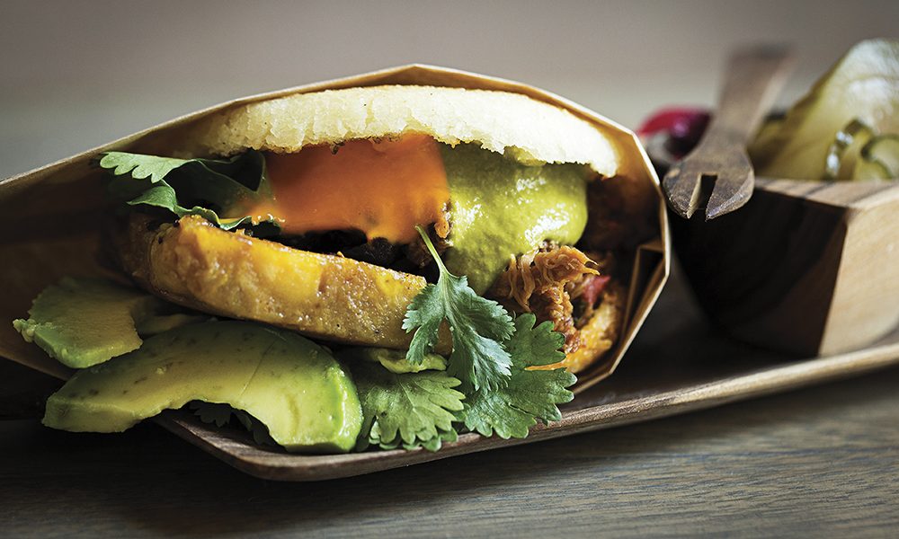 Alma—that’s “soul” in Spanish—is a clean, white space judiciously dotted with greens, a neutral canvas for Stein’s brightly colored kitchen creations. A cocktail bar on one side turns out variants of popular Latin cocktails, like the Pisco de María, a dusky, mellow version of the Peruvian pisco sour. On the other side of the space, diners line the small exhibition-style kitchen to watch chefs prepare, among other South American specialties, numerous iterations on the traditional Venezualan “sandwich,” the arepa.
