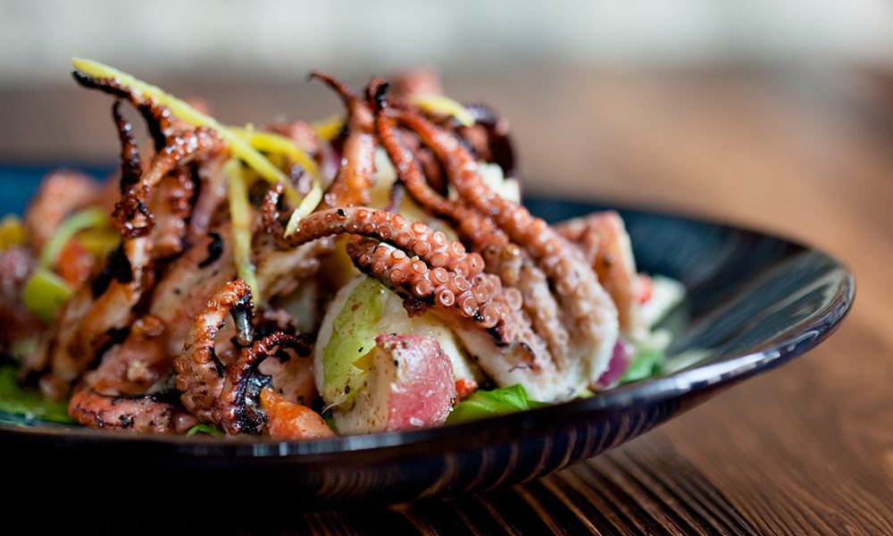 Cosima features a number of raw, marinated, and cured crudo dishes, but the grilled baby octopus appetizer—complemented by capers, peppers, and celery and tossed in an anchovy vinaigrette—is incredibly flavorful and a unique take on potato salad.