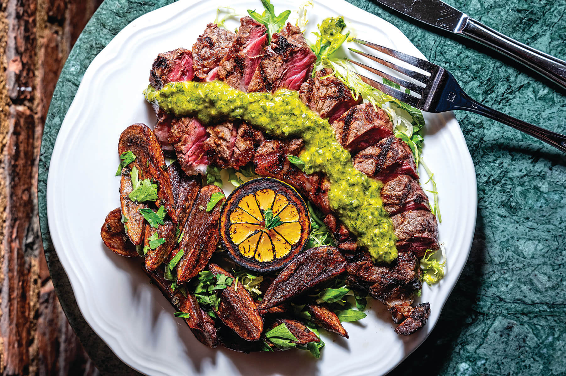 Arctic char is not a fish seen on many menus, and here it’s treated with the needed simplicity. The filet was cooked perfectly and served atop a bed of fava bean, tomato, and cucumber panzanella. It’s a worthwhile light and healthful option. The star of the menu is the 10-ounce grilled strip steak, served sliced with purple potatoes and an excellent salsa verde. Squeeze the grilled lemon over the meat to add a bit of acidity, and you’ll have one of the best takes on steak in town.