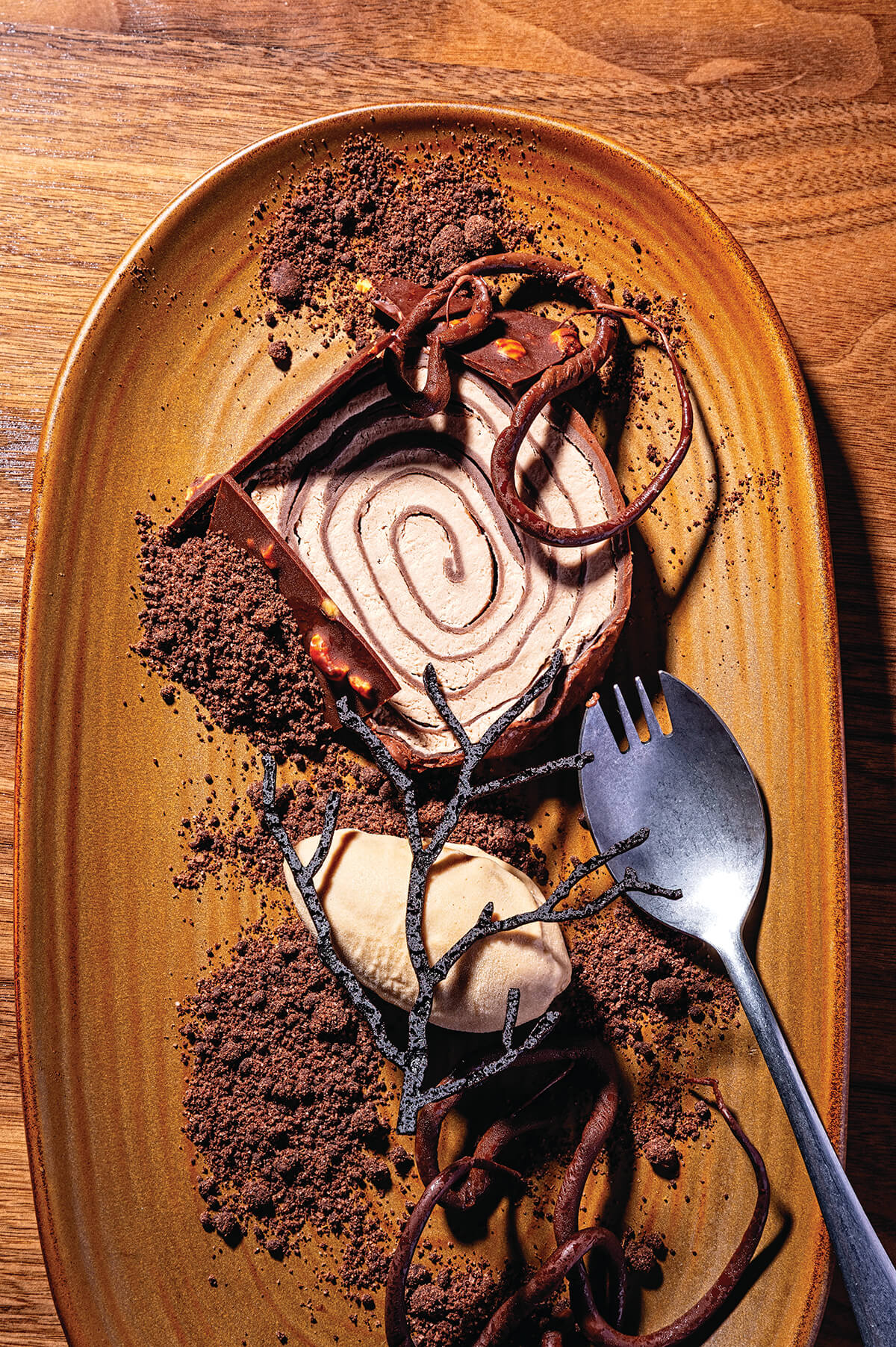 Desserts are also worthy of consideration. The Wye Oak Cake—a sort of tree with log-shaped chocolate mousse cake and chocolate bark that fans out like branches—was an edible work of art, and an apple dumpling, inspired by the annual Apple Dumpling Day tradition at the former all-girls’ school, recalls the cinnamon toast of childhood.