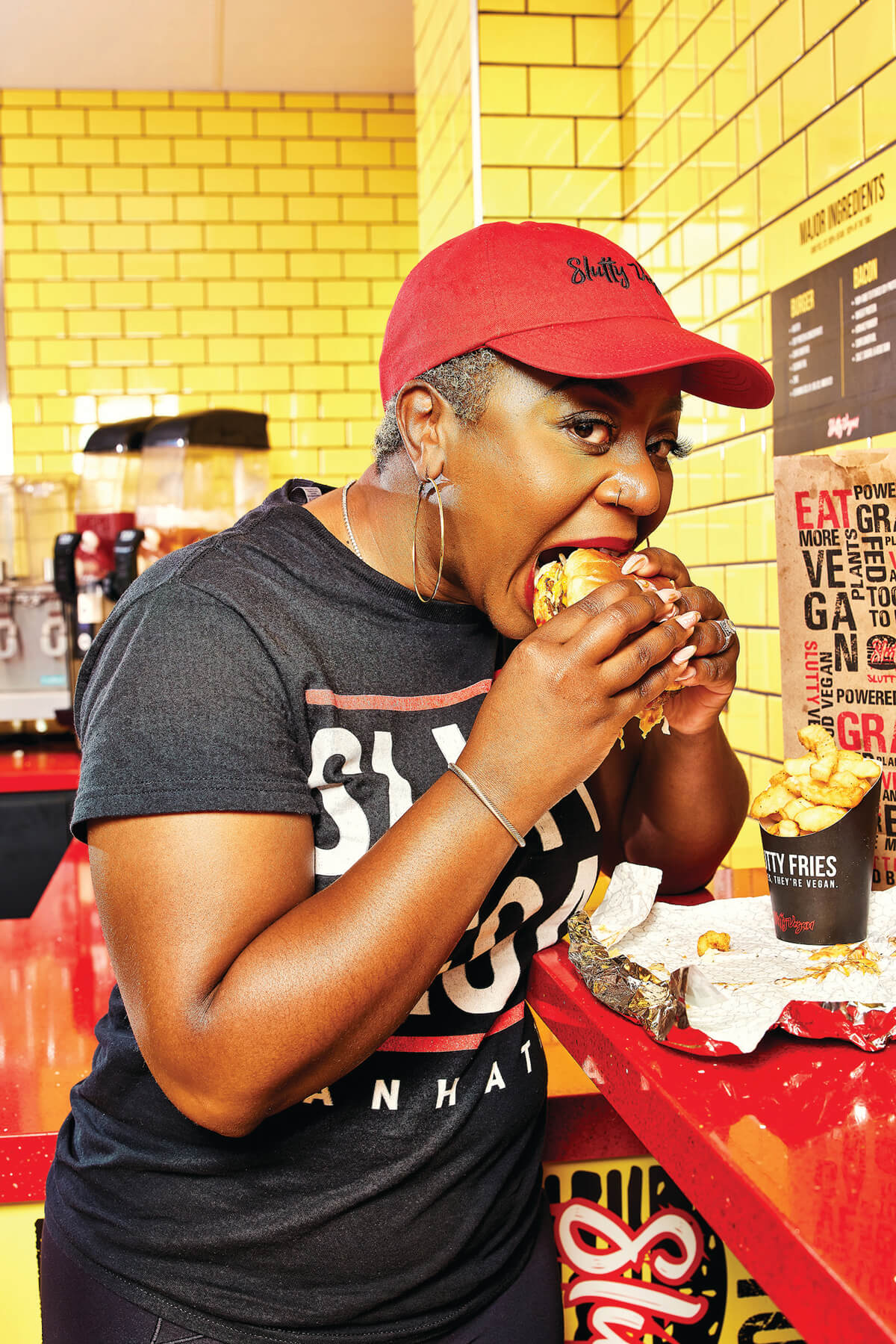 I worked on the Maury Show [as a producer] and marketing has always been my thing. I know how to get people to pay attention in the weirdest ways. I realized that if I could merge food and sex, it would be a win-win. On the Maury Show, everything is racy and in your face—that’s why he was on the air for 25-plus years. I wanted to create something that would spark people’s attention. When I thought of the name, I was sitting in my two-bedroom apartment—the name Slutty Vegan hit me like a bolt of lightning.