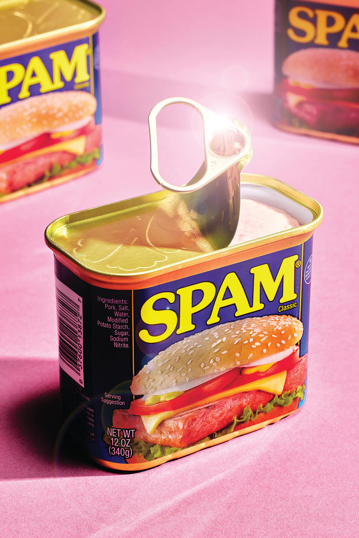 Pink Flamingo’s Dorr has his theories about why SPAM—a portmanteau of “spiced ham” introduced by Hormel Foods in 1937, two years before the start of WW II, and popularized when American troops brought the food to Hawaii—is back in fashion.