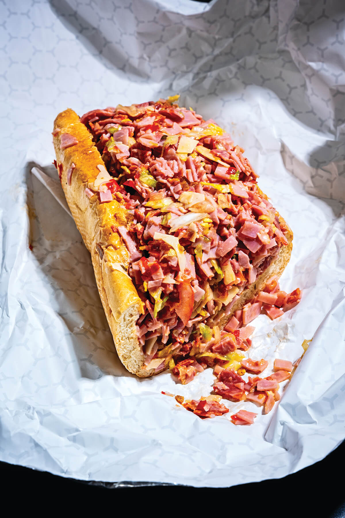 Chopped sandwiches are just what they sound like—with all the components of a sandwich cut into small pieces and mixed before being loaded into some sort of sub roll.