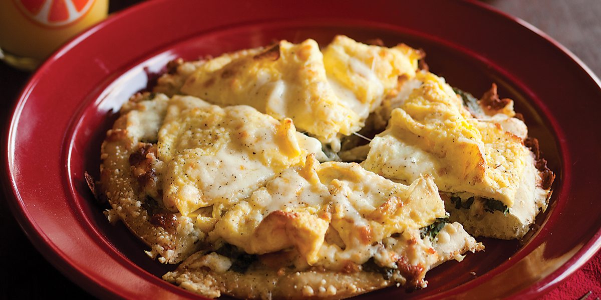a.m. on a Thursday, and the breakfast spinach pizza caught our eye. But