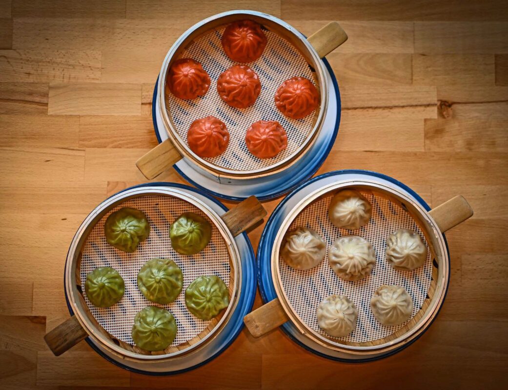 They typically arrive in the baskets in which they are steamed, and eating them is something of a happily practiced skill. You need to lift them from their basket without puncturing the dumplings’ thin skin, so doing this with your fingers, rather than chopsticks, is more effective, even if it’s hotter. There will be spoons to help with the slurping, as well as accompanying tiny dishes of soy sauce with threads of fresh ginger.