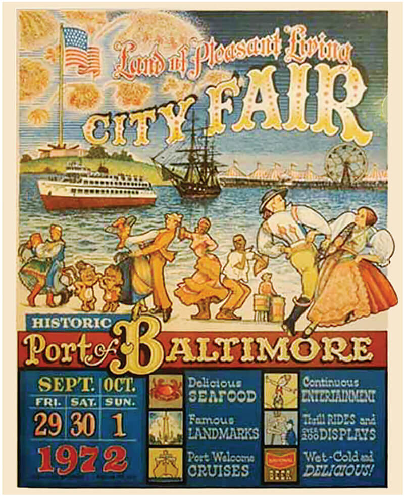The City Fair launched in 1970 on a shoestring budget, run out of a vacant furniture building at Charles and Franklin streets. Office equipment included desks cast off from the school system. Naysayers, including the mayor, thought the whole idea naïve. Who would attend a three-day, county-style fair in downtown Baltimore two years after the ’68 riots? It turned out, 350,000 people that inaugural year. Nearly double the following September. Soon a million visitors.