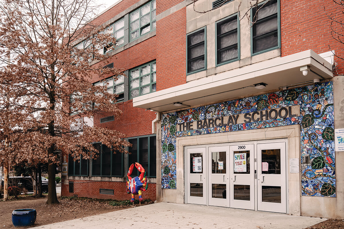 Play: Spaces to get out and move include the fenced-in green expanse of Calvert Street Park, the playground and basketball court at King and Kennedy Park next door, and the Greenmount Recreation Center to the east. Just outside Barclay’s borders are Harwood Park’s playground and urban garden to the north, as well as the sprawling 16-acre Wyman Park Dell with its winding trails, jungle gym, Ping Pong table, and the grassy green down the slope.