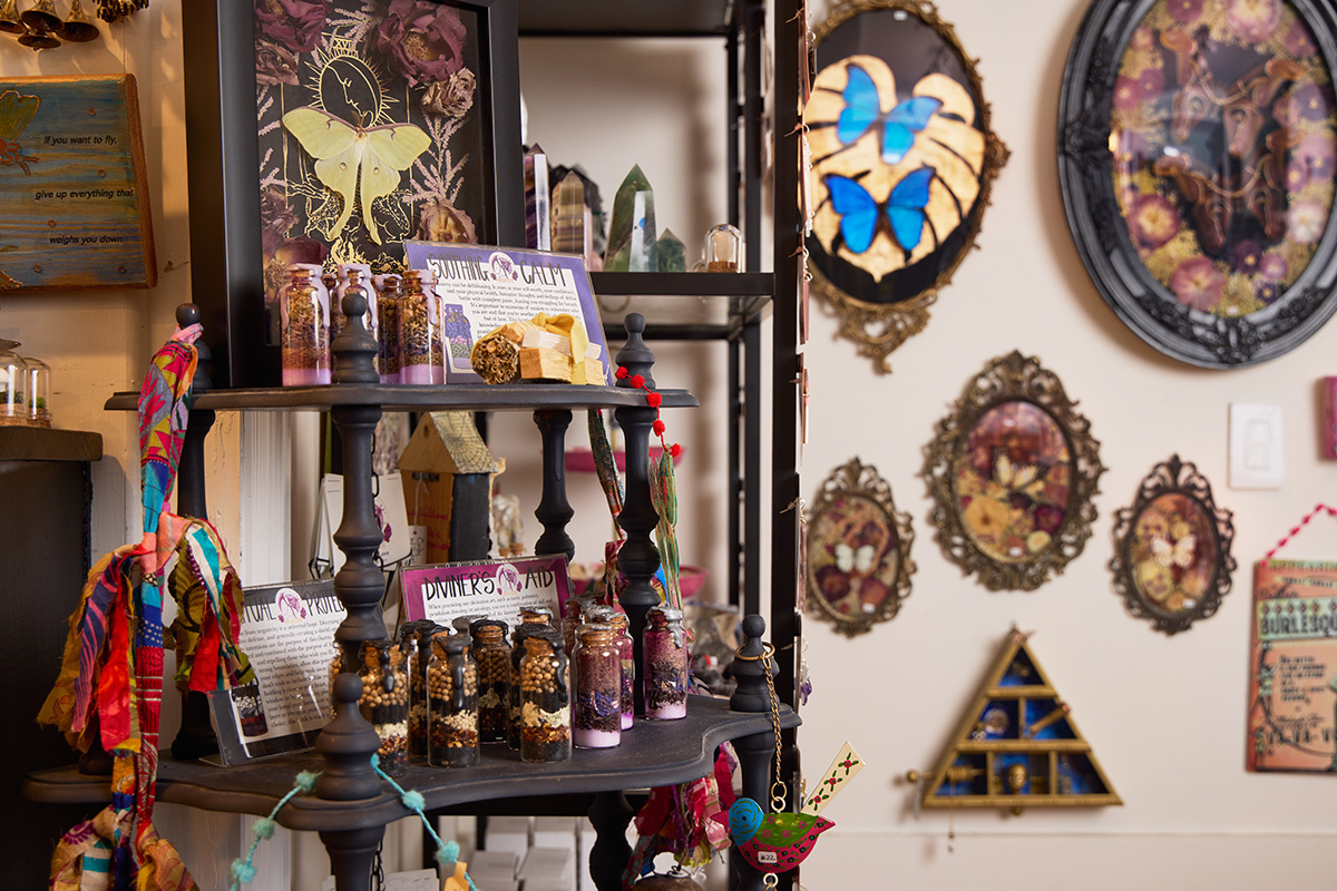 “I want people to touch the art or pick up something handmade and connect to the community,” Averill says of Bohemian House, filled with local artwork, home décor, repurposed vintage, candles, oils, and oddities.