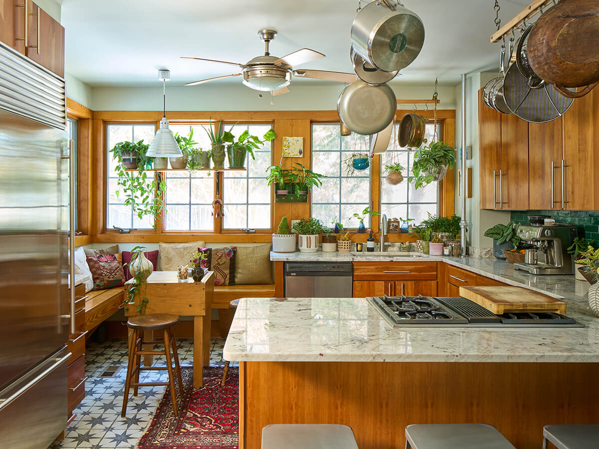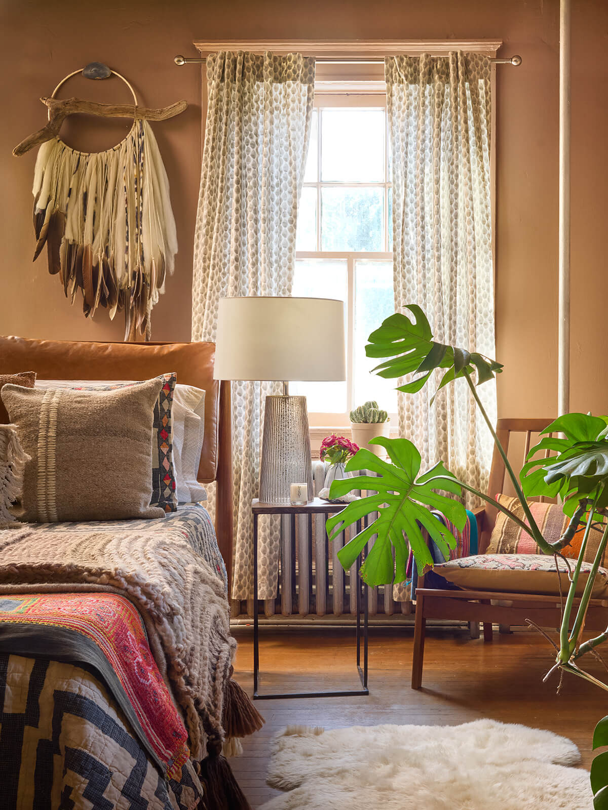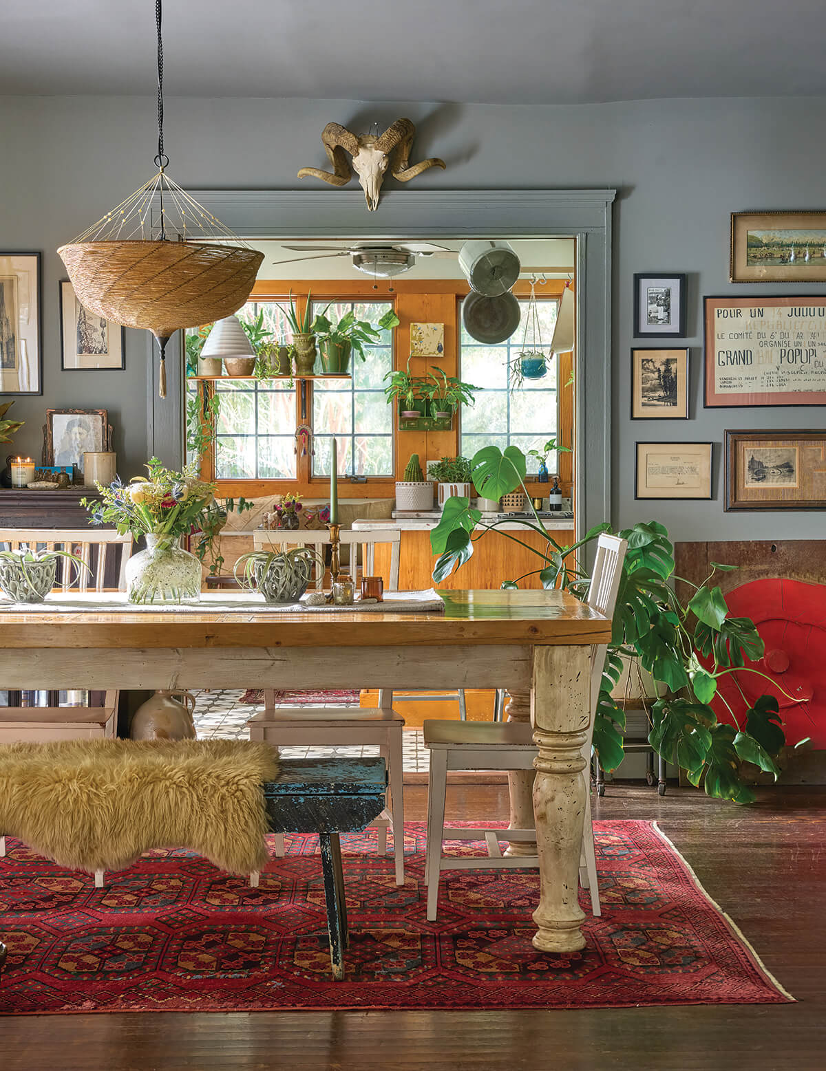 Wanderlust: I’m drawn to objects that carry stories—the history major in me—pieces that have lived before and continue their journey in a new space. My style leans bohemian and maximalist, with carefully curated vignettes throughout. Think laid-back West Coast ease and Southwest desert warmth, layered with the richness, vibrancy, and old-world charm of far-flung places like Morocco and Paris, anchored by greenery that blurs the line between indoors and out. Family and friends have described it as warm and welcoming, a compliment that means everything—knowing they feel at home here.