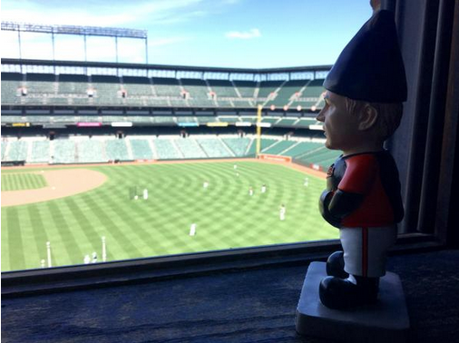 So we have been excited about the Buck Showalter garden gnome for months now—even including it in our May issue’s City Guide as one of the best events of the summer. The gnome was mailed out to media outlets this week and everyone (including us!) has gotten in on the #ShowtheGnome fun. Props to The Sun‘s Eduardo Encina for his amazing vine video of the gnome riding the T in Boston and to 105.7’s Casey Willett for his continuous clever placement of Buck’s mini-me—even though, we have to say, it doesn’t look that much like our O’s manager. Of course, you can see him for yourself if you’re one of the first 25,000 fans at the Orioles game tomorrow.