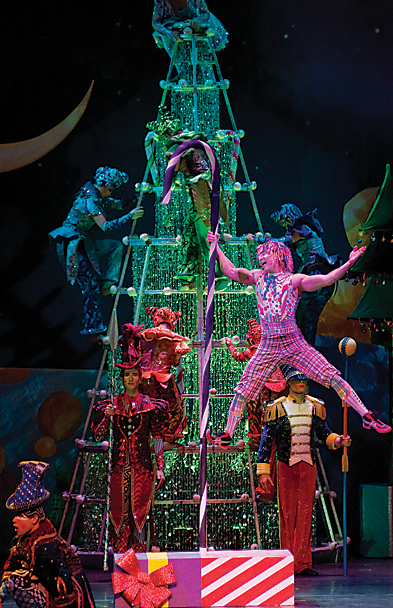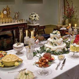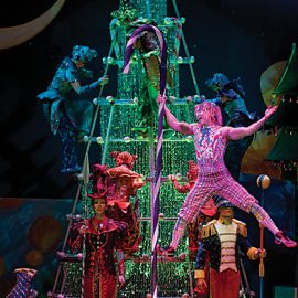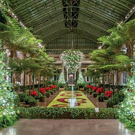 Head in from the cold to the spectacular garden conservatory. The space is lavishly decorated with Christmas trees and seasonal plants, and the music room, inspired by a peacock masquerade ball, includes an 18-foot rotating peacock-themed tree.