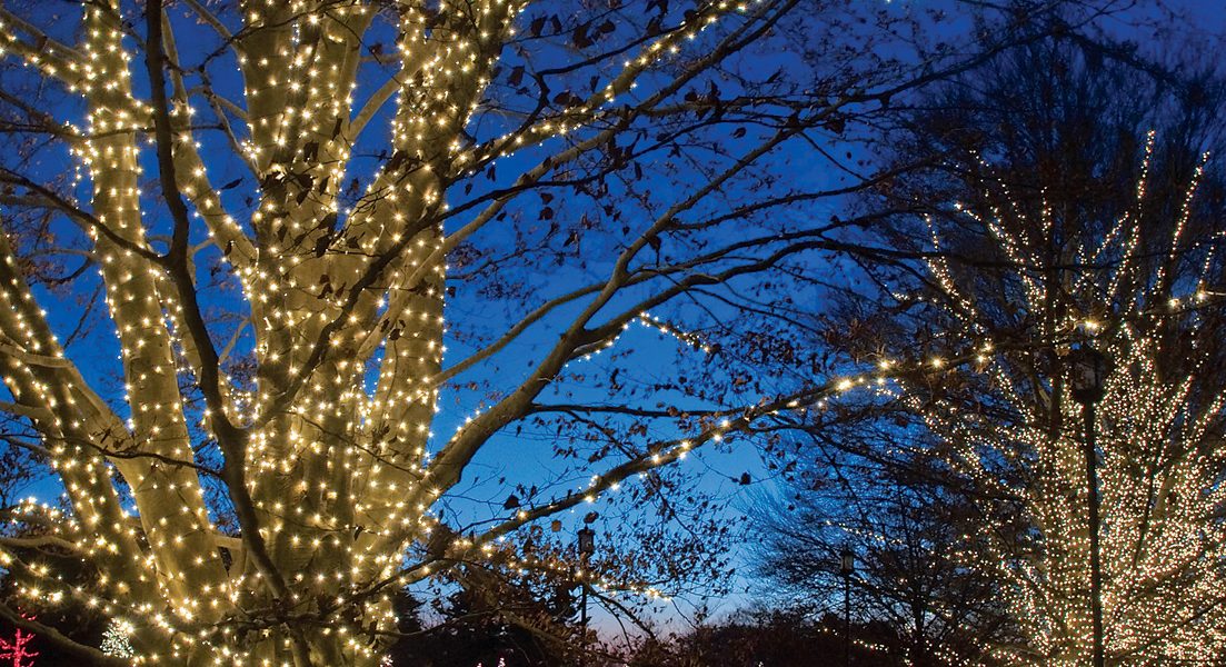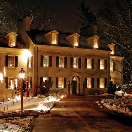 For all-out holiday finery, few places in the Mid-Atlantic rival Longwood Gardens (1001 Longwood Road, Kennett Square, PA, 610-388-1000), which seems to make its much-anticipated Christmas show more elaborate each year. The property, purchased by Pierre du Pont in 1906, is stunning any time of year, with more than 1,000 acres of gardens, trees, meadows and fountains, plus a world-class conservatory with about 5,500 species of plants. But Longwood is even more magnificent over the holidays, when no corner is cut to create a dazzling extravaganza of lights, music, and magic.