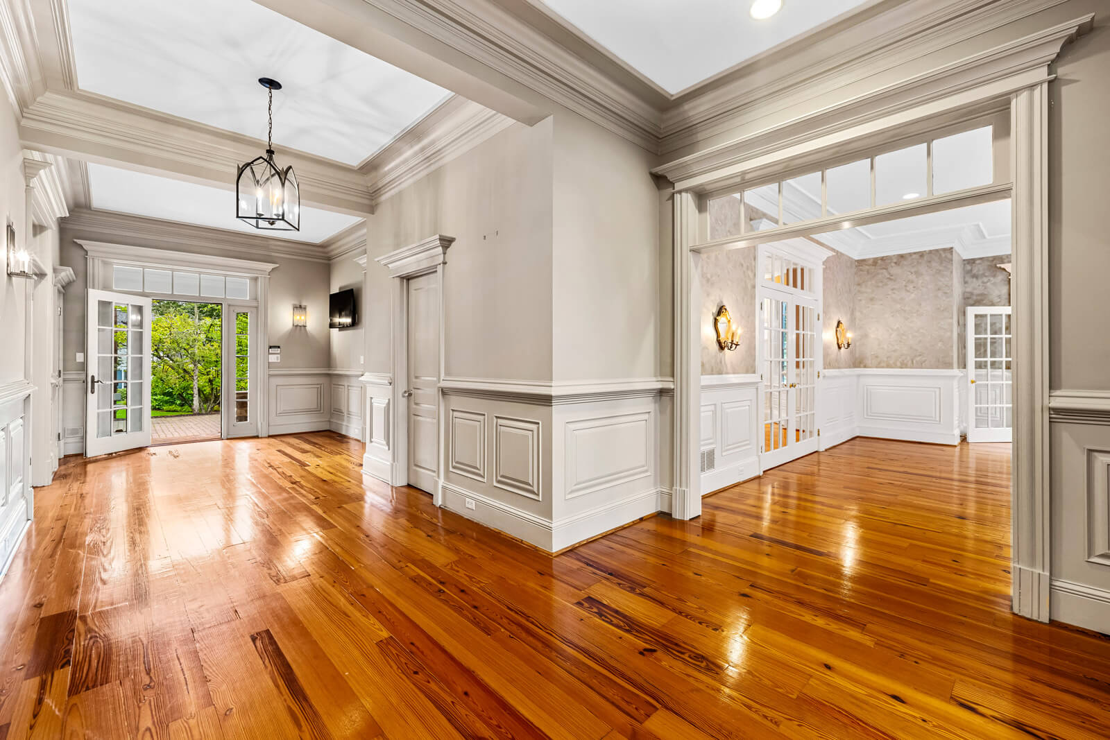 Situated in the prestigious Stevenson area of Greenspring Valley, 10606 Candlewick Road is a luxurious custom-built residence that exemplifies elegance and craftsmanship. This magnificent stone and cedar shake residence boasts 6 bedrooms and 5 full and 3 half baths, with a private staircase leading to a separate au-pair or guest apartment, adding an additional bedroom, bath, and full kitchen. With a total of 7 bedrooms and 6 full and 3 half baths, this 9,000+ square foot estate combines elegance, craftsmanship, and comfort in a truly unique setting. From the moment one enters the wide foyer, the exquisite millwork, including beamed ceilings, crown moldings, and reclaimed pine flooring, sets the tone for the extraordinary design throughout the home.