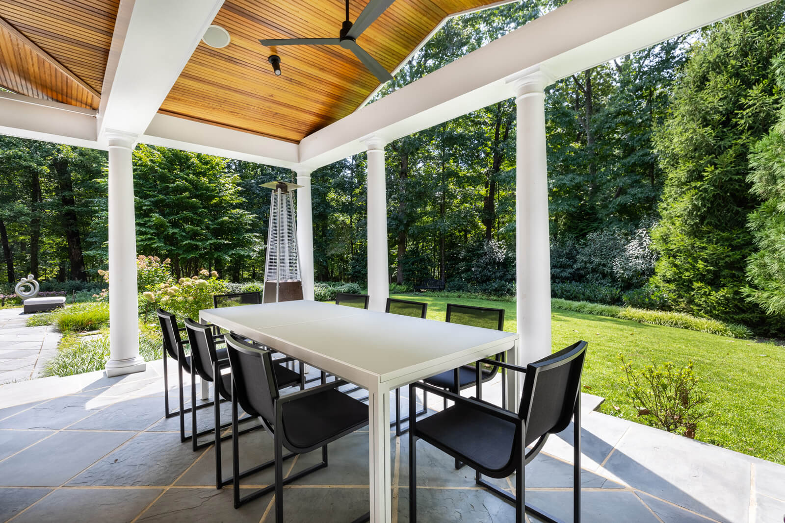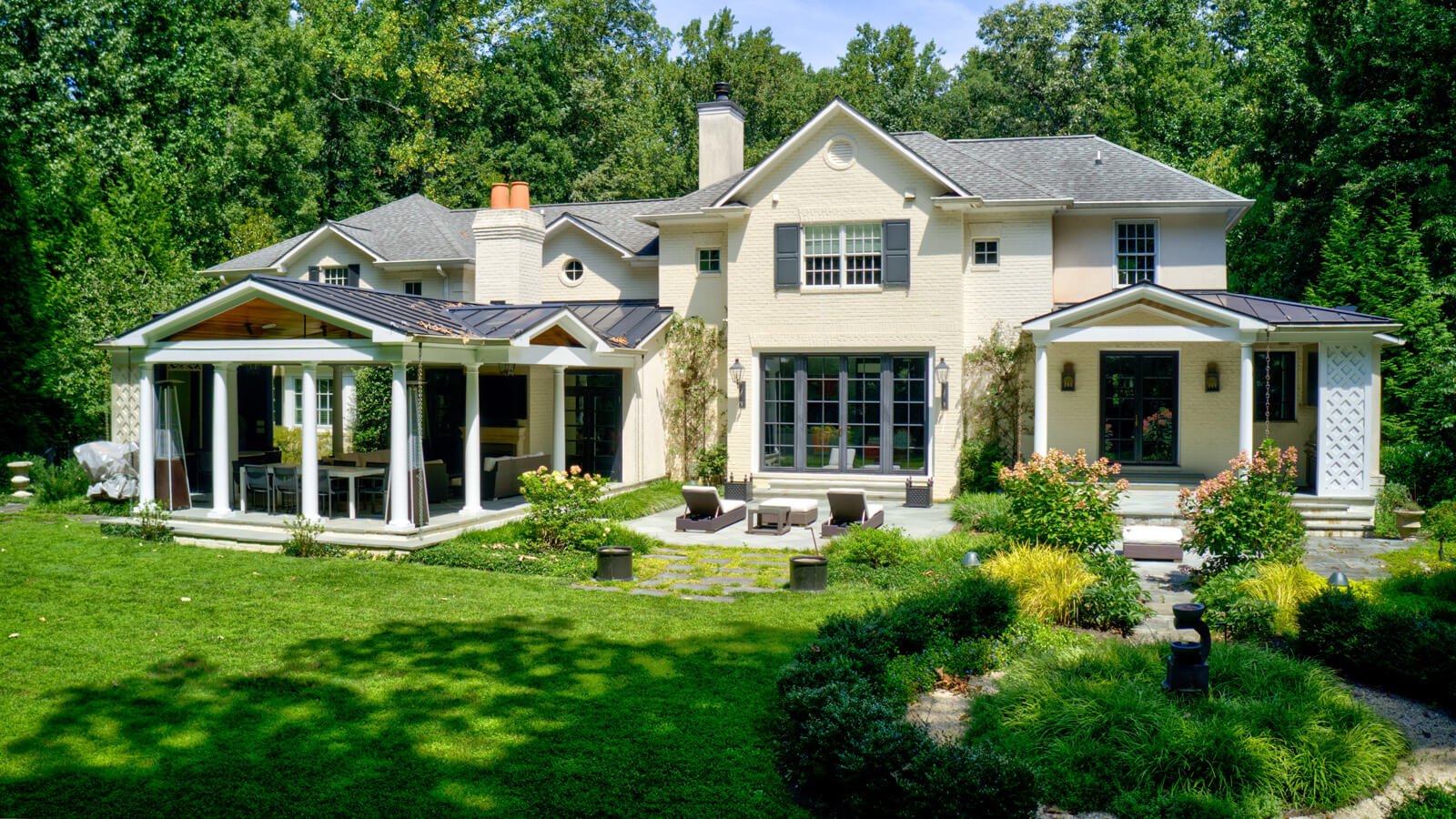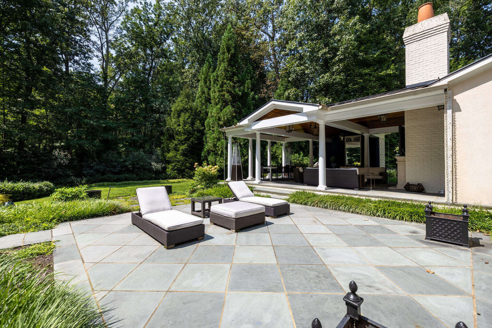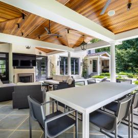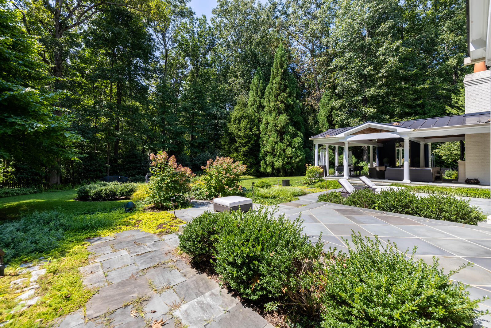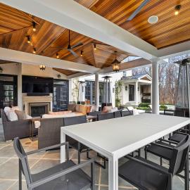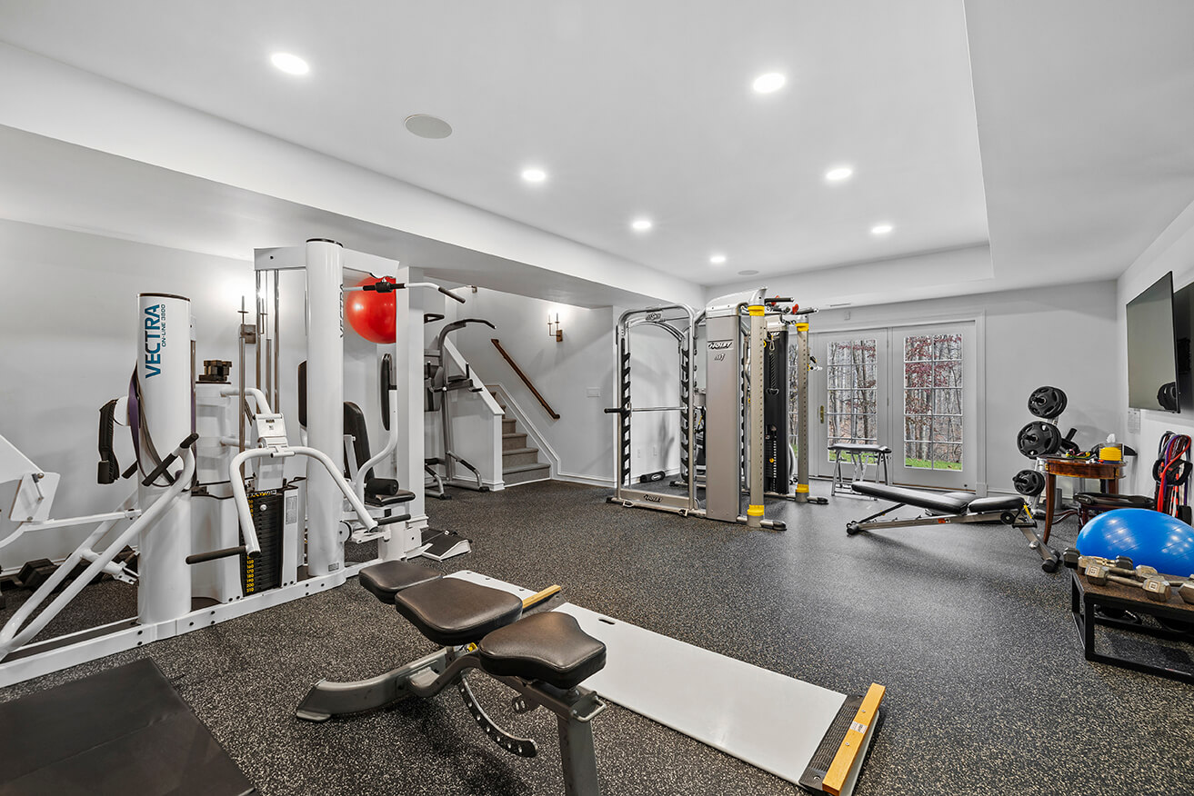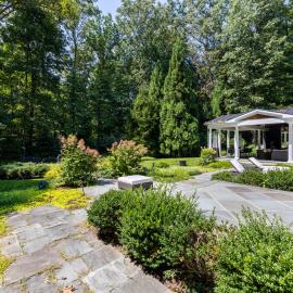 The sumptuous primary suite on the second level is a sanctuary of relaxation, with its marble spa bath and two custom-fitted dressing rooms. Four additional bedrooms, one with a sitting room, three baths, and a second laundry room complete this level. The walk-out lower level features the sixth bedroom and bath, two exercise rooms, and a large bonus room. The attached three-level guest annex/private office complex offers many opportunities for use, while the large 2013 pavilion with its fireplace, dining, and seating areas is perfect for outdoor entertaining. The pavilion flows seamlessly to patios and gardens, including a covered porch off the kitchen with a cooking center, creating a harmonious connection between indoor and outdoor living. This estate is equipped with state-of-the-art systems, recent updates and renovations, tremendous open-air parking capacity, and professionally landscaped, partially wooded 5.53 acres adjacent to Caves Valley Golf Club.