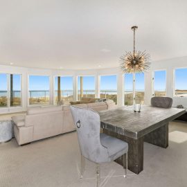 Set on the shoreline of the Atlantic Ocean, there is no match to the drama and breathtaking panoramic ocean views that immediately come into view once inside this vast and beautiful residence. A thoughtful architectural design maximizes the oceanfront position with a curved wall of windows, a gracious open floor plan, multiple balconies, and two expansive ocean side decks with clear view rails. Forward-thinking, yet timeless design offers endless lifestyle options and amenities that are simply unparalleled. Beginning with the setting and its connectedness to the sandy beach, majestic waves and spectacular sunrises, this versatile property offers a finished garage with six bays, heat and air-conditioning, storage room, and an upgraded full bath for beach-goers. Two complete and separate residences emerge above the garage, each with generous living and dining spaces, upgraded kitchens, luxury master suites, guest bedrooms, and upgraded baths. Six en-bedrooms and five upgraded full baths are ready to accommodate friends and family, while interior living and dining open seamlessly to private wrap-around decks and welcome in sea breezes to enhance relaxation and entertaining venues large and small. Soft sand, rolling waves, and endless sunshine await you here at 4301 Atlantic Avenue, Ocean City. To learn more about this property, click here.