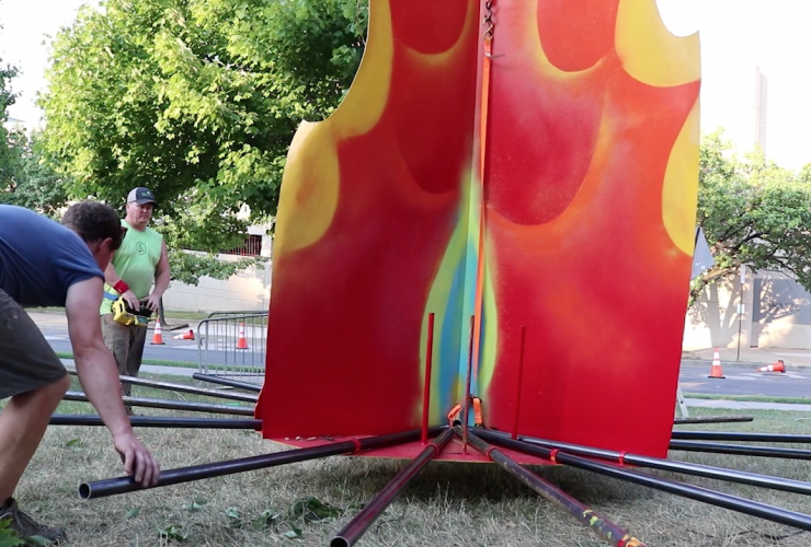 Watch Artscape’s Large-Scale Campfire Installation Steve Baker of Wholly Terra assembles massive camp-themed sculpture
